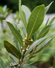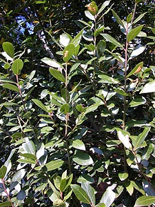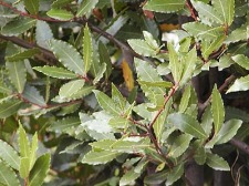 ゲッケイジュ:月桂樹は地中海沿岸の原産で、ローレルの名前でも親しまれている。ギリシャでは象徴的な木であったようで、この枝で冠を作って(月桂冠)、マラソン優勝者の栄誉をたたえている。葉や果実には芳香があり、香料としてあるいは薬用に使われてきた。カレーにローレルの葉が入っているのをご存じの方も多いであろう。