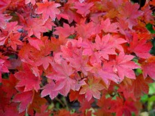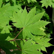 葉の形は整っており、やや堅い。葉身は長さ4〜7.5cm、幅5〜10cmで7〜11に中裂するが、9つに分かれているものが多い。葉柄は長さ3〜7cmで、葉身よりもやや短い。若葉では両面に毛が多いが、成葉では裏面にはわずかに毛が残り、葉柄には多少とも毛が残る。当年生の枝には必ず軟毛があり、前年枝にも毛が残るのが普通。この点は本種の特徴の1つであり、同定ポイントである。
