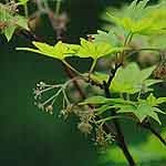コハウチワカエデは本州・四国・九州に分布する落葉小高木。暖温帯上部から冷温帯に広く分布する。尾根筋などの風の強い場所にも生育するが、スギ植林地などでも見られる。多様な場所に生育しており、攪乱地に生育する傾向が高いのではないかと思う。