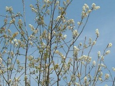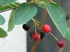 花は白く細長い5弁花を鈴なりに咲かせます。葉は若葉の頃は明るいい感じで、秋〜初冬に鮮やかに紅葉します。薔薇の実に似た実は成熟すると濃赤紫色となり甘く食用となり、生食またはジャムなどの加工品として用いられます。花も実も紅葉も観賞に適し、寒さ・病虫害・湿地にも強い木です。日本にもザイフリボクがありますが実や花がもっと小さく、実は食べません。