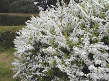 手を掛けなくても生長し、大きくなると1.5mほどの高さになる。地面の際から枝がいく本にも枝垂れて、細く、ぎざぎざのある葉をつける。花は、3月から5月にかけて、5弁で雪白の小さなものを枝全体につける。そのさまから和名がついた。